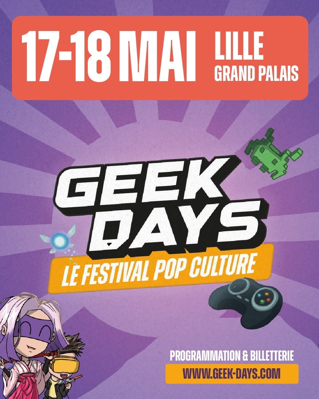 Pop culture, jeux vidéo, manga & cosplay – animations, invités, tournois et boutiques geek tout le week-end.